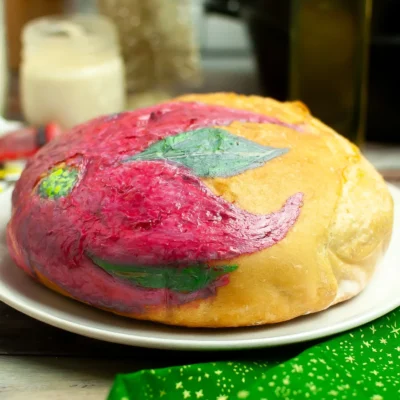 If you’re looking for a showstopper holiday bread that’s surprisingly simple to make, this festive Poinsettia Sourdough Loaf is absolutely perfect. The dough is soft and flavorful thanks to the sourdough starter, and the hand-painted poinsettia design on top turns an everyday loaf into something that is centerpiece-worthy.